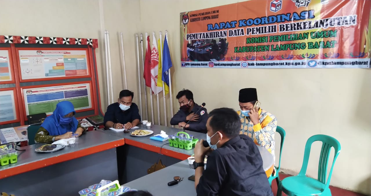 Pada hari ini Selasa tanggal Tiga Puluh bulan Maret, tahun Dua Ribu Dua Puluh Satu, bertempat di Aula KPU Lampung Barat pukul 13.30 WIB KPU Kabupaten Lampung Barat melaksanakan Rapat Koordinasi Daftar Pemilih Berkelanjutan Tahun 2021 di tingkat Kabupaten Lampung Barat, Rapat Koordinasi dihadiri oleh