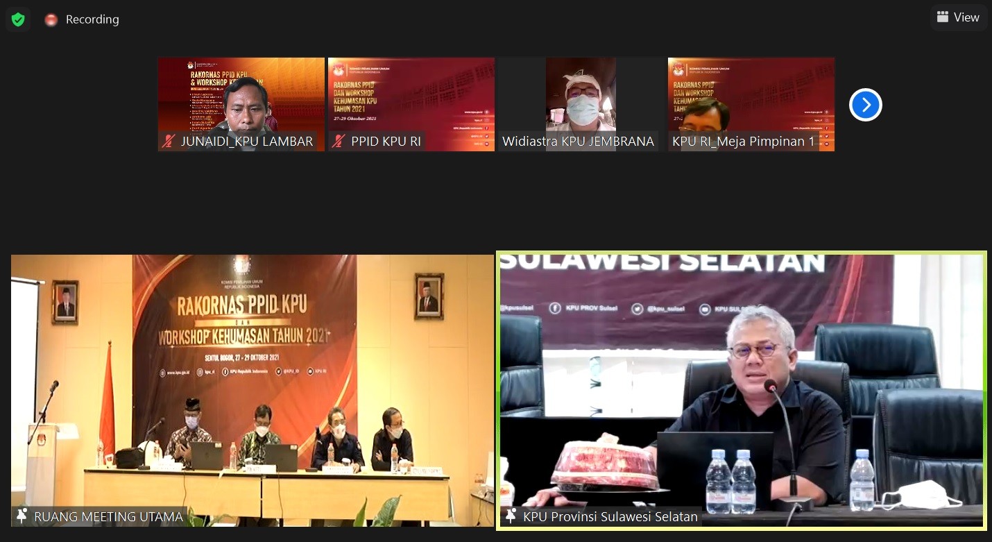 Kegiatan yang dihadiri oleh Ketua KPU Lampung Barat, Bp. Arip Sah, S.Kom., ini dihadiri oleh Koordinator Divisi Hukum Bp. Surya Pirnata dan Koordinator Divisi Program dan Data, Bp. Ahmad Soleh, S.H., serta dua Komisioner yang bergabung dalam jaringan yaitu Bp. Syarief Ediansah, S.HI., M.M selaku Koordinator Divisi Teknis dan Ibu Indah Dian Sari, S.HI., M.HI. selaku Koordinator Divisi SDM dan Partisipasi Masyarakat. Dari jajaran Sekretariat, hadir juga Sekretaris KPU Lampung Barat, Bp. Redy Kennedy, M.IP., serta Para Kasubbag Sekretariat KPU Lampung Barat.