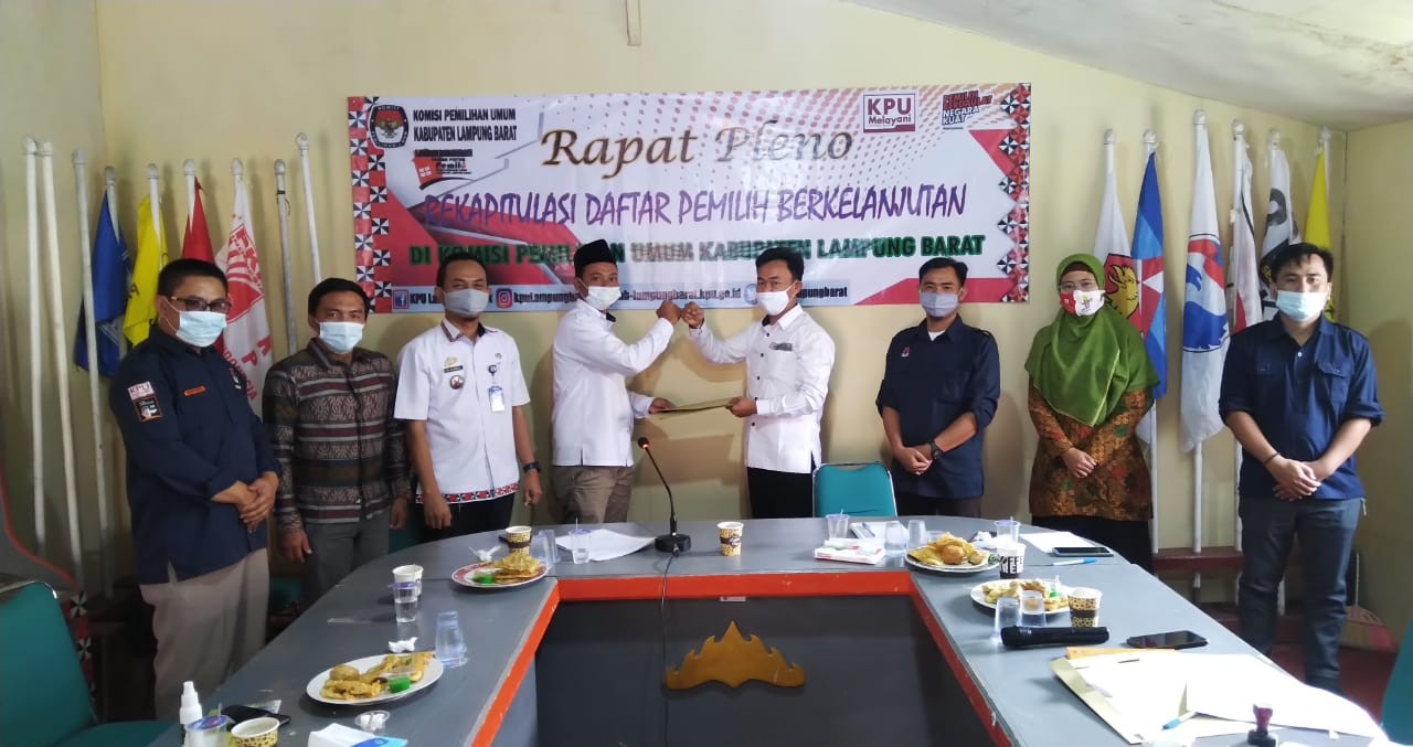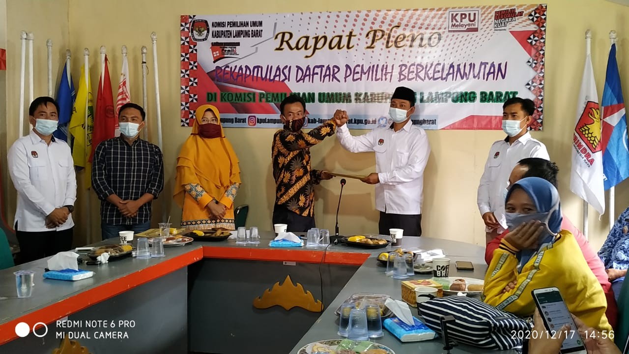 Pada hari ini Kamis tanggal 17 Desember 2020 KPU Lampung Barat melaksanakan Rapat Pleno Rekapitulasi Daftar Pemilih Berkelanjutan Periode Desember 2020/Triwulan IV di Aula KPU Lampung Barat. Yang Di Hadiri Oleh pihak terkait yaitu Kepala Dinas Kependudukan dan Cacatan Sipil Kabupaten Lampung Barat, Bawaslu Kabupaten Lampung Barat dan Pimpinan/LO Partai Politik Se-Kabupaten Lampung Barat.